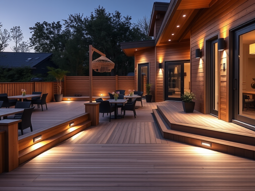 - Innfelt belysning: Installer lamper direkte i terrassegulvet eller i rekkverket for et minimalistisk uttrykk.